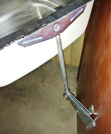 The newly designed NEVER FALL COMPLETE CORNER SINK REPAIR SYSTEM is made to repair a fallen sink in a corner cabinet with ease and without the need to remove the sink or plumbing supply lines, drains, and any other accessories, like garbage disposals, wiring, etc. This innovative redesigned heavy duty 16 gauge 45 degrees angled cabinet wall bracket gives it the ability to properly repair a corner cabinet sink which is almost next to impossible to fix under normal circumstances. The extended heavy duty 45-degree angle bracket allows you to support the sink in a corner cabinet situation were the sink is placed further back and the cabinets are at 45 degrees to the sink. It’s professionally made and designed by a granite fabricator after seeing these problems time and time again. It takes a lot of effort to push up the sink with all the plumbing and accessories attached, especially while laying on your back under the sink and trying to screw something to the cabinet wall at the same time, especially in a corner cabinet sink design. Trying to multitask this situation is difficult at best but with The Never Fall complete repair system, these tasks are simplified with no aggravation. The installation is a breeze, just insert the double-headed sink bracket into the flange of the sink. Then, peel the double-sided adhesive tape from the back of the newly designed wall bracket and press it against the cabinet wall. The temporary adhesive allows for hands-free operation to install the six screws that are provided. Simply turn the shaft of the turnbuckle until the sink raises and makes contact with the countertop. Next, tighten the lock nut and you’re done! The optional front center sink support ratchet bracket and repair clip are also provided for extra support in the front for the center of the sink if needed. Simply install the repair clip to the upper front frame of the cabinet with the two screws provided. Then, slide the ratchet bracket into the repair clip and secure with one bottom screw. Finally, just push up the ratchet bracket till it meets with the sink and countertop. The Never Fall is a bulletproof system that will last as long as your kitchen even supporting 680 lbs and can be used with cast iron, composites, and stainless steel sinks. Comes with an instructional manual and a link to a repair video. The Never Fall will never fail you! Life Time Warranty Patient Pending Watch the instructional YouTube video here - https://youtu.be/plbkR5eMciI